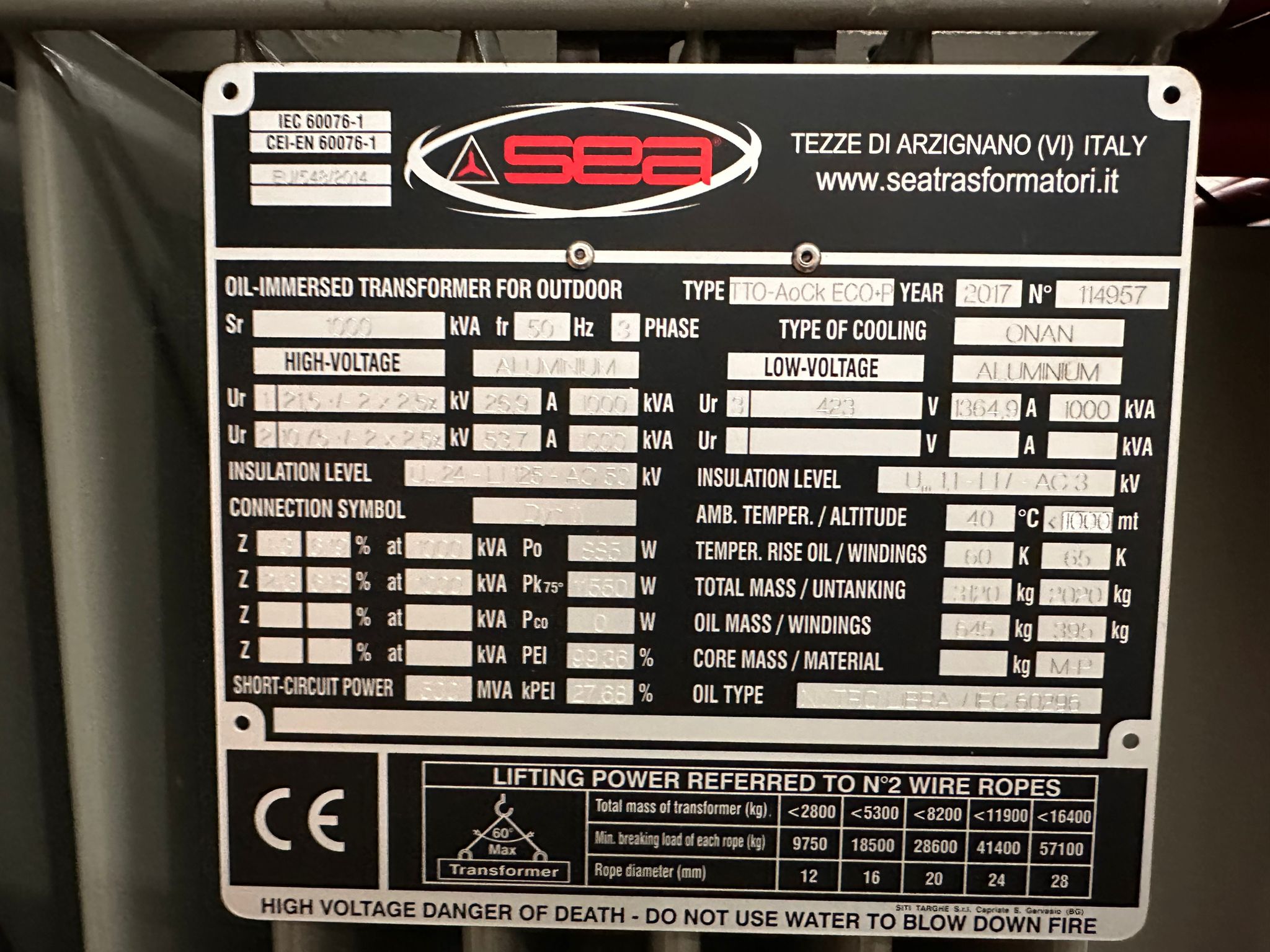 | Voltage Ratio - HV/LV | : 20 000 / 415 V |